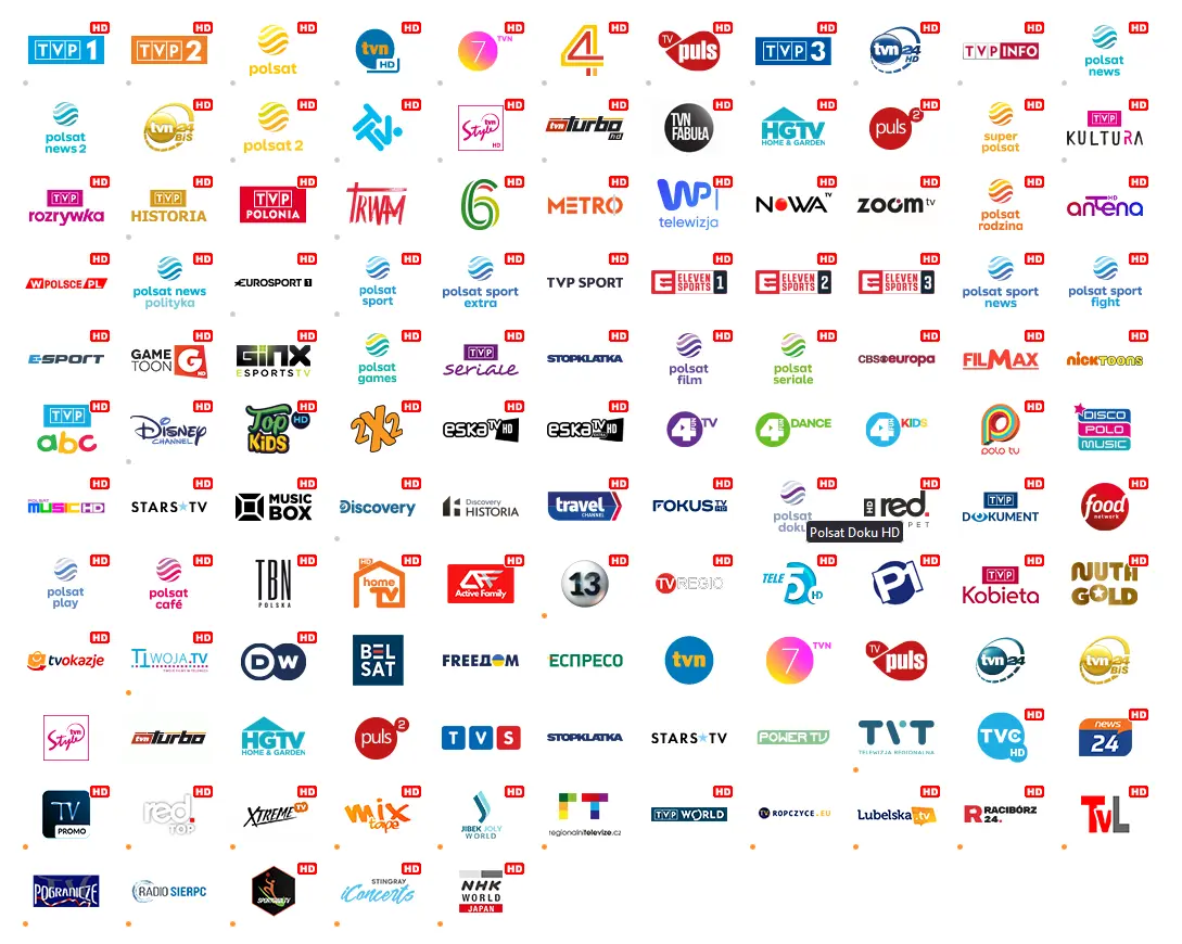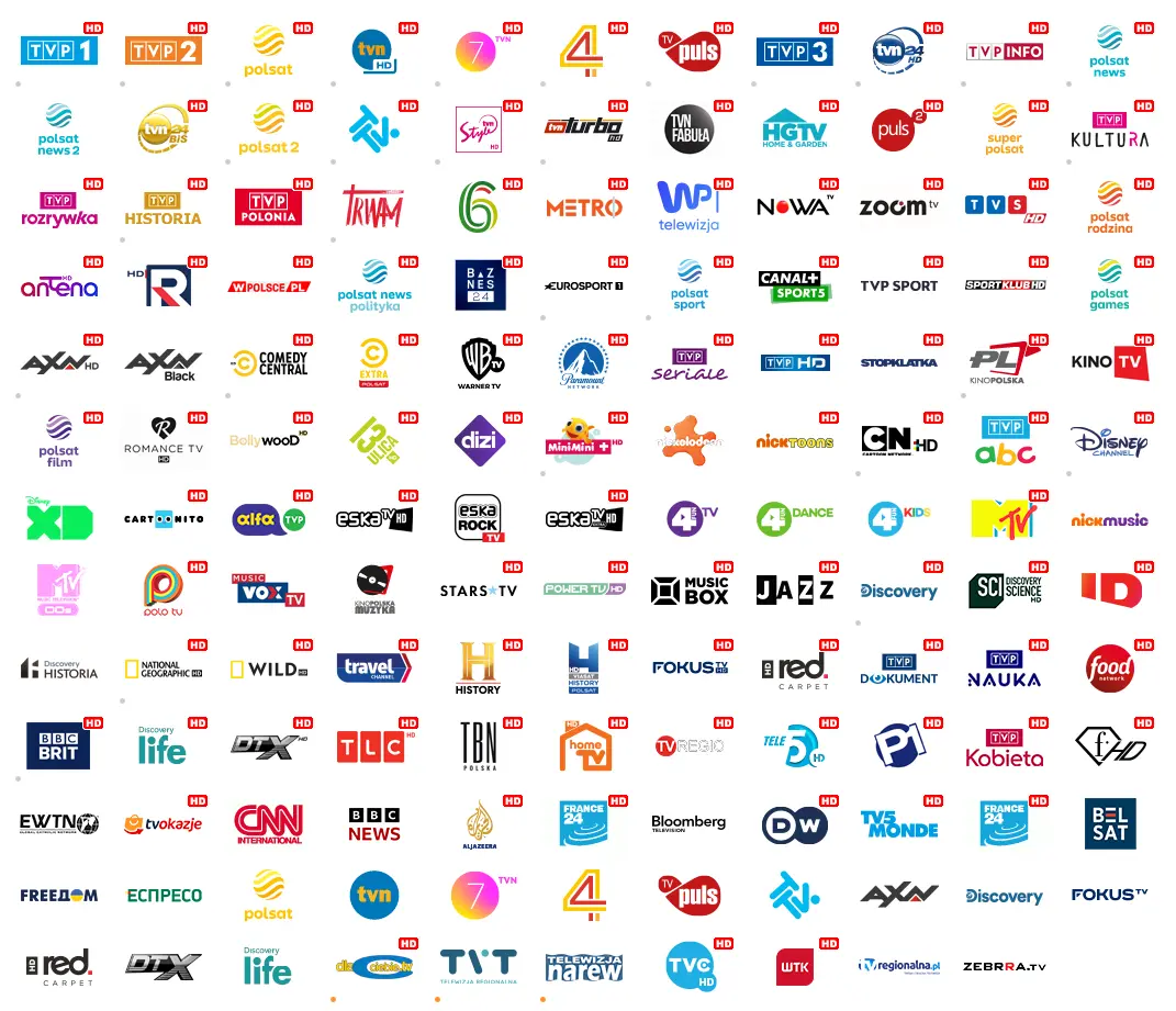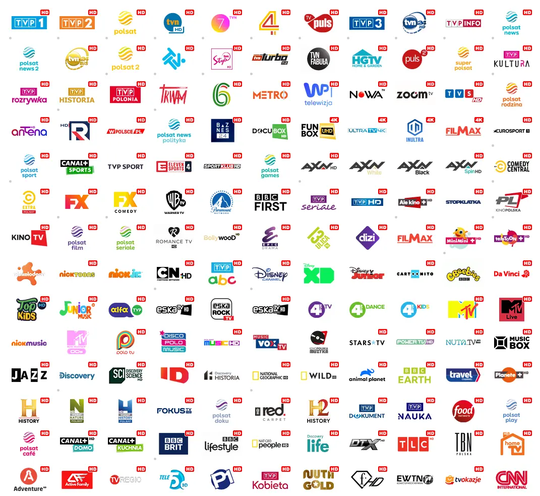Zawiera 78 kanałów w tym 54 w najwyższej jakości HD.